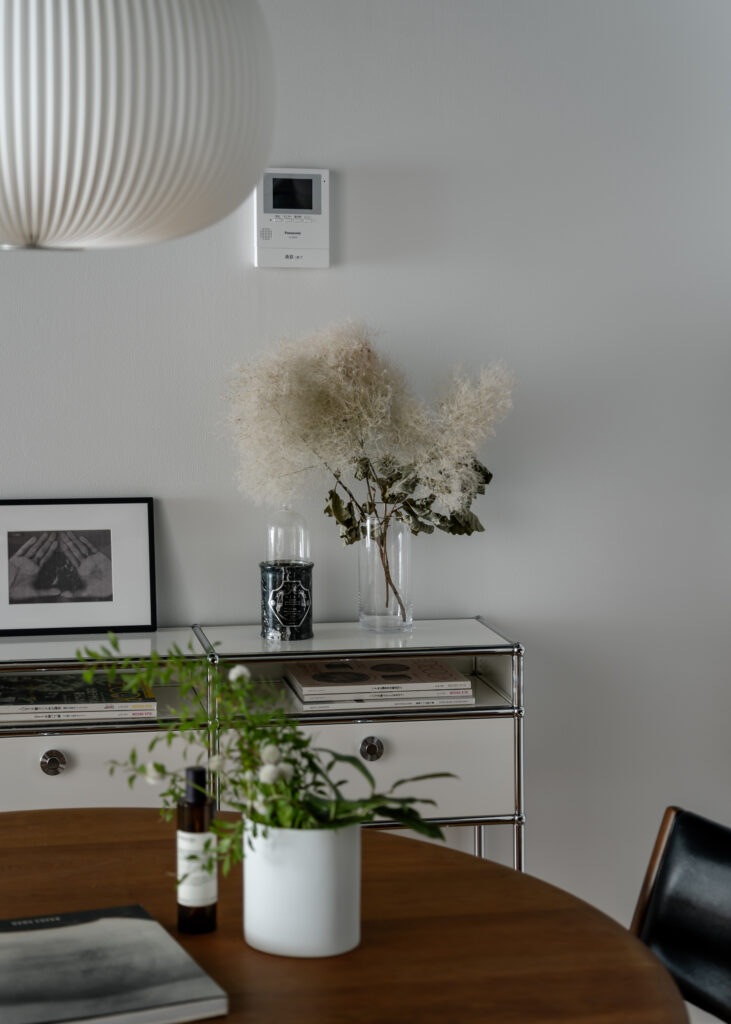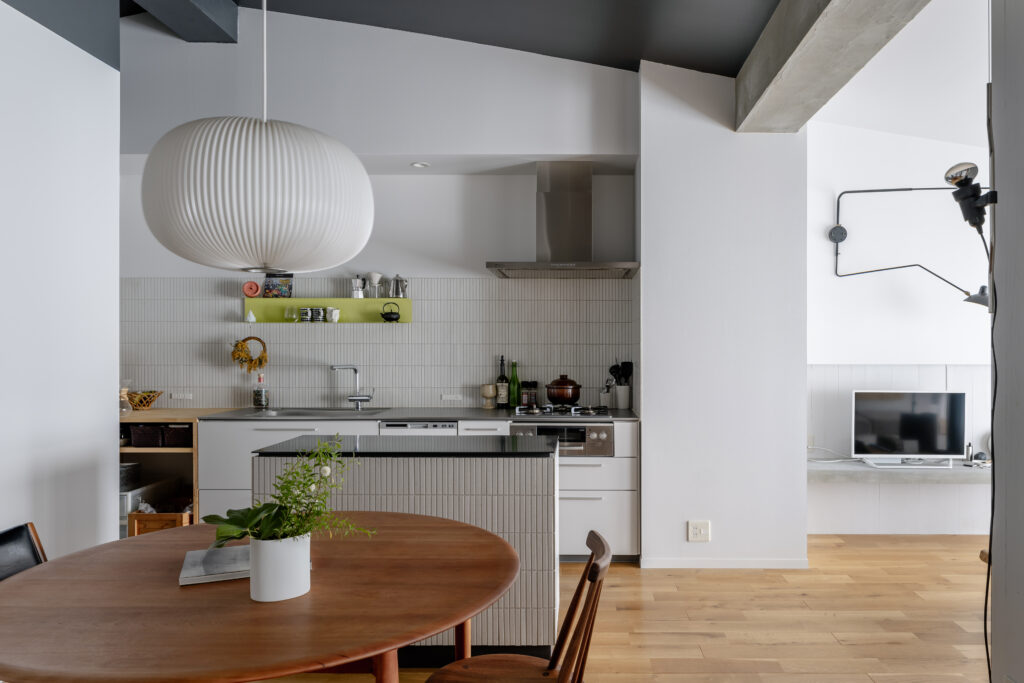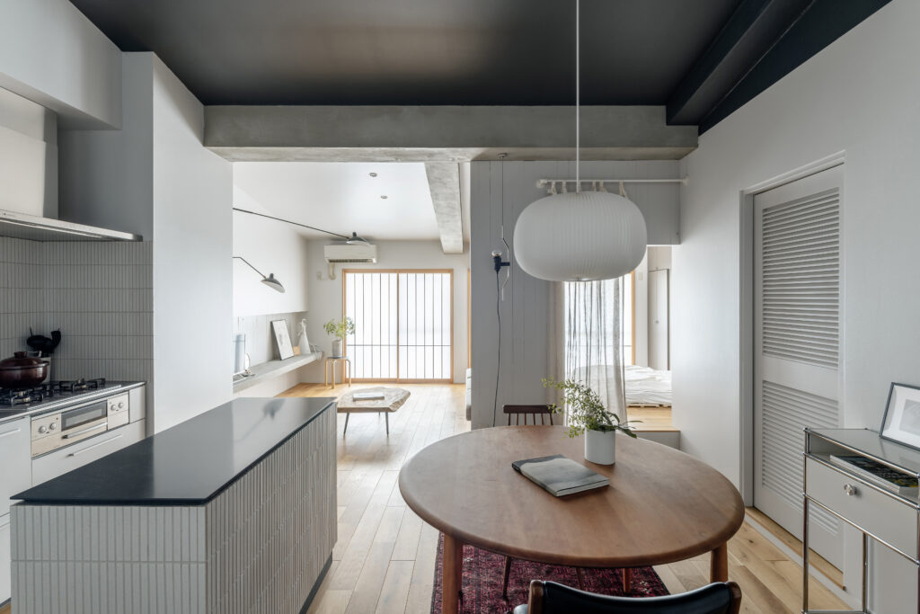 無垢材や漆喰、障子やブラックの天井など、質感のある素材の中に、