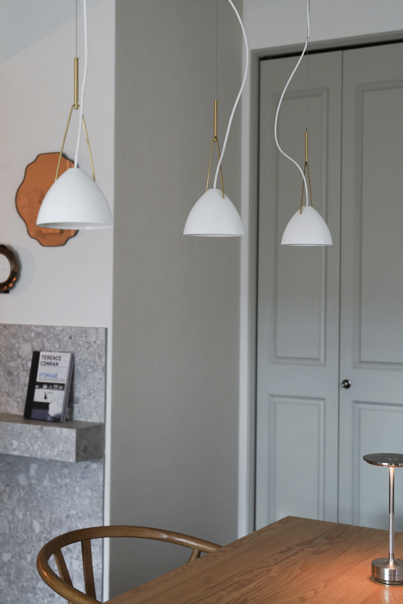 ペンダントライトやガラスの間仕切り、リネンのカーテンで大人っぽさを演出しています。